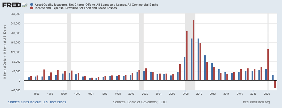 In 2020 (under new accounting rules), they provisioned $132.5 billion or 2.7x the level of credit losses which allowed for $31.3 billion of reversals in 2021.